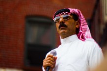 Expressionless and inscrutable behind his sunglasses and underneath a red keffiyeh, Omar Souleyman betrays little — lighting a cigarette and gesturing slightly with his hands is…